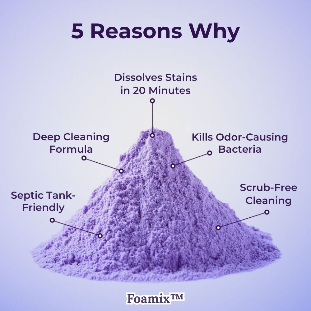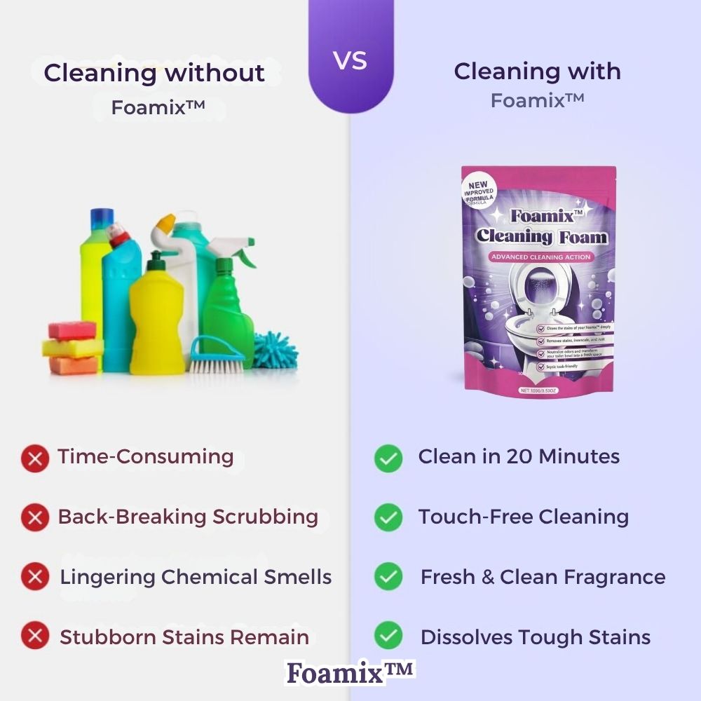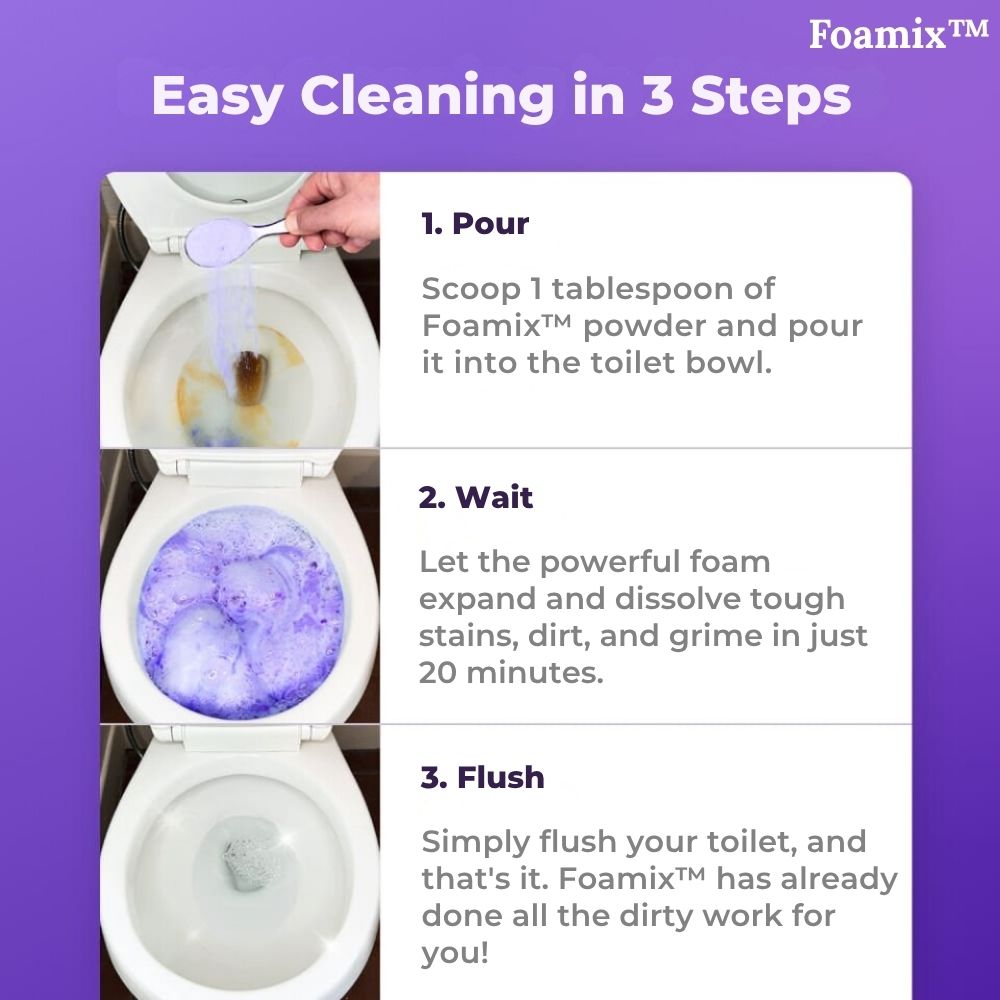 Foamix™ transformeert uw schoonmaakroutine door direct vlekken, kalkaanslag en vuil af te breken, waardoor uw toilet fris, hygiënisch en als nieuw is — zonder de gebruikelijke inspanning.