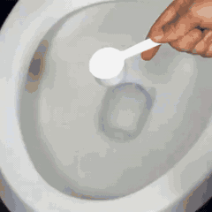 2️⃣ Strooi in de toiletpot Strooi het poeder rechtstreeks in de toiletpot, inclusief onder de rand waar vuil zich het meest ophoopt.